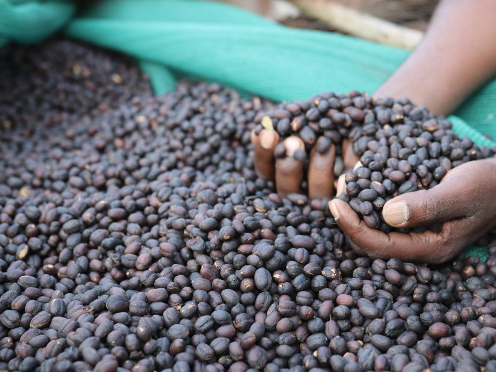 5. التجفيف المسبق في الظل (تجفيف القشرة) - تنظيف القهوة من العيوب الأولية، أسهل عندما تكون القهوة لا تزال رطبة (50% رطوبة).