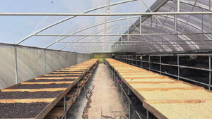 La lavorazione inizia con la conversione della ciliegia in caffè in pergamino presso un impianto di lavorazione a umido ecologico, progettato per minimizzare l'uso di acqua. L'impianto è attrezzato per gestire caffè lavati – sia fermentati che non fermentati – così come stili semi-lavati. L'essiccazione avviene in serre e sotto strutture ombreggiate in politene per garantire una disidratazione lenta e uniforme che promuove la sicurezza del prodotto, una maggiore durata di conservazione e una tracciabilità affidabile. La tenuta ospita anche l'attrezzatura e i macchinari necessari per macinare e preparare il caffè secondo le specifiche pronte per l'esportazione, garantendo un controllo di qualità end-to-end e la piena tracciabilità all'interno delle strutture della famiglia.